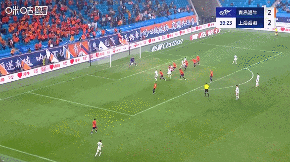 上半场第11分钟,青岛海牛的萨里奇助攻,兰克尔禁区内爆射率先破门。