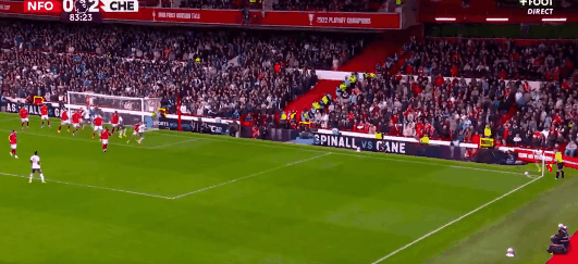 仅仅过了3分钟,蓝军就扩大了领先的优势,内托前场定位球直接起脚打门,皮球穿过人墙后,直接飞入球网,靠着内托4分钟之内的传射建功,蓝军在客场把领先的优势扩大到了2球。不甘心主场输球的诺丁汉森林,随后发起了疯狂的反扑,第71分钟差一点扳回一球,但热苏斯门前的打门被横梁拒绝,比赛最后时刻,詹姆斯再入一球,将全场比分定格为了3-0。