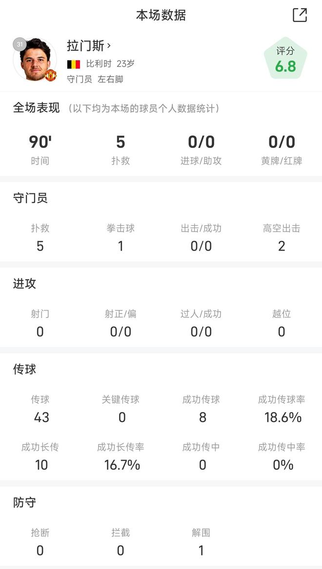 雷速体育10月20日讯 在今天凌晨结束的英超双红会中,曼联门将拉门斯表现出色,帮助曼联客场力克卫冕冠军利物浦。