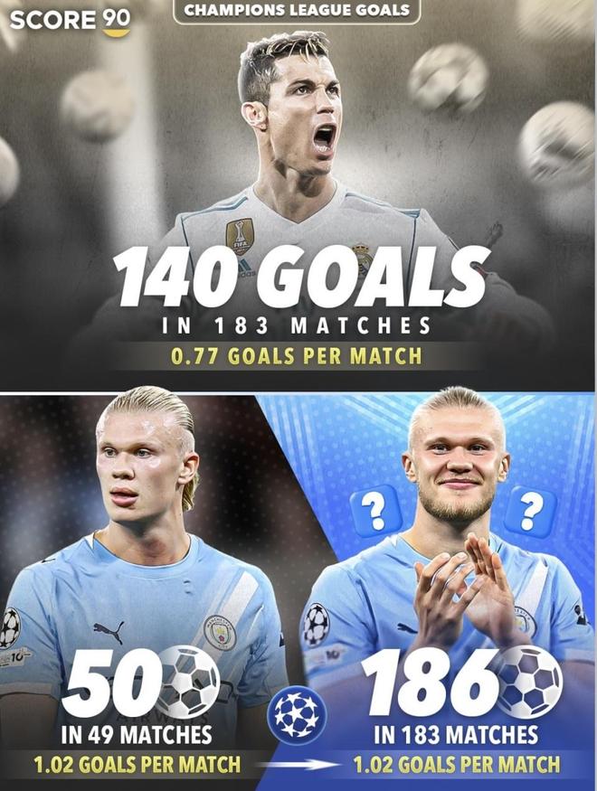眼下的结论很清楚:C罗=总量领先;哈兰德=当前效率更高。