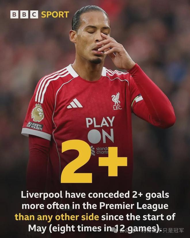 利物浦在包括本场在内的最近12场英超比赛中,有8场丢球2球或以上,其中本赛季8轮比赛有5场丢2球。