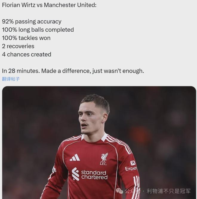 但今天主场对曼联,斯洛特再次让维尔茨替补,这已经是维尔茨最近4轮英超第3次没有首发出场。而无论是本场对曼联,还是上一轮对切尔西,维尔茨替补出场后的表现,对球队进攻都很有提升。