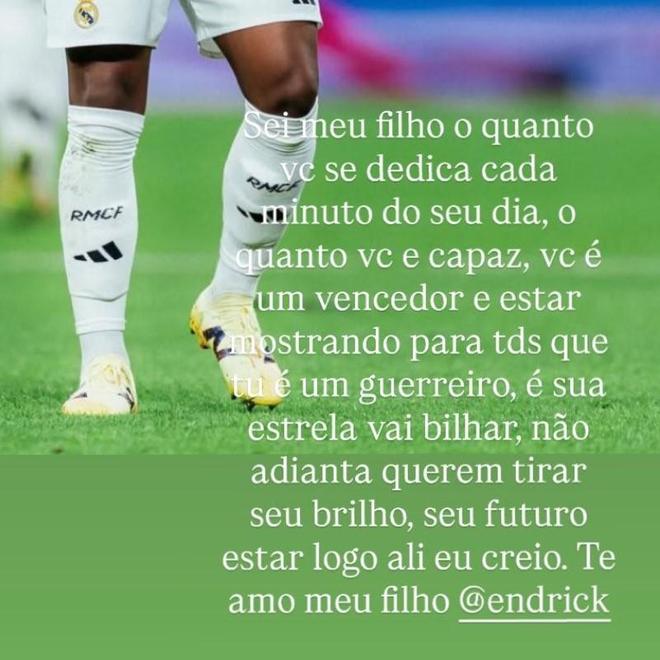 恩德里克的父亲道格拉斯-恩德里克在社交媒体写道:“我知道你,我的儿子,你每天都在专注于足球,你非常优秀。你是一个赢家,你是一位战士。你的星光将会闪耀,你的未来不可限量。我爱你。”