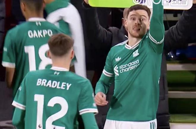 此役客场对阵布伦特福德,在利物浦1-3落后的情况下,罗伯逊替补登场,这位苏格兰后卫迎来利物浦生涯各项赛事第350次出场。