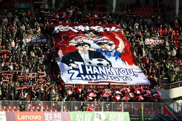 成功夺冠、冲超之后,铁西体育场变成了欢乐的海洋。现场大屏幕打出“长风破浪会有时,中超我们来了”,球迷们打出“中超我们回来了”“我们是冠军”的巨幅标语。还有的球迷展示印有“感谢庄毅”的巨幅旗帜,感谢辽宁铁人俱乐部投资人庄毅为辽沈足球做出的巨大贡献。