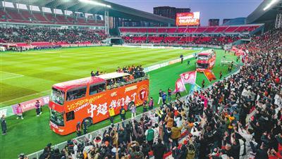 7月19日,辽宁铁人队在沈阳铁西体育场的“榜首大战”可谓是本赛季的决定性战役,在4万球迷的助威声中,辽宁铁人队以4比2大胜积分相同的冲超对手重庆铜梁龙队,扩大领先优势领跑积分榜,开启“狂飙”模式,最终圆梦冲超。