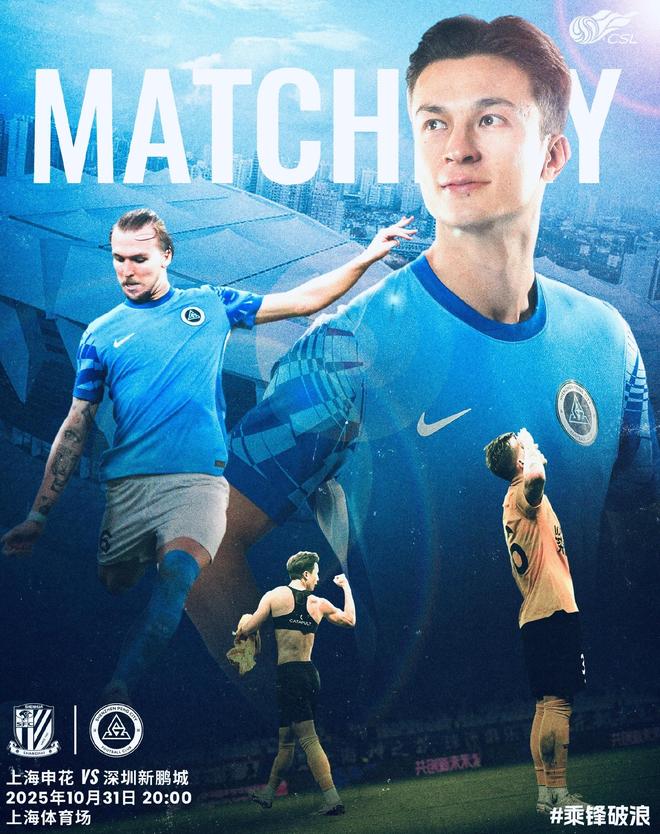 10月31日(星期五)20:00,在2025赛季中超联赛第29轮的一场重头戏中,深圳新鹏城将奔赴客场上海体育场,挑战上海申花。10月29日,深圳新鹏城发布了此役的赛事海报,主题为:乘锋破浪,沪上耀鹏光!