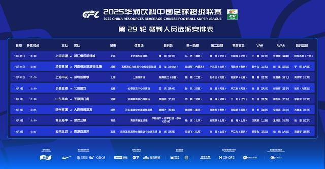 北京时间10月31日,中国足协官方公布了中超29轮裁判选派安排表,其中傅明执法海港vs浙江,沙特籍裁判伊斯梅尔担任海牛vs三镇主裁。