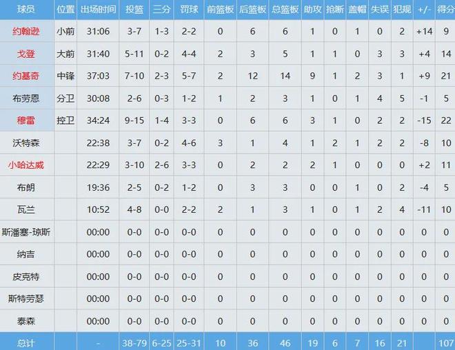 掘金那边,约基奇空砍21分14板9助准三双,穆雷砸出22分6板3助。