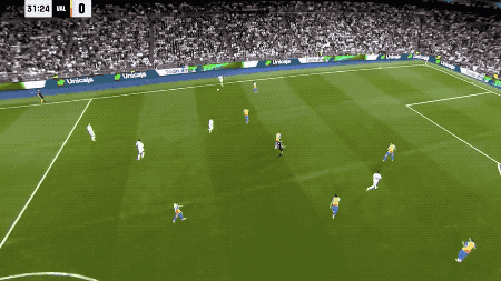 第43分钟,贝林厄姆在禁区线附近连续盘带,突然起脚,皮球直钻死角,皇马半场结束就已经3-0领先了。