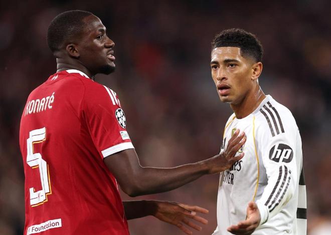 在阿隆索执掌皇马帅印之后,一度陷入到了遇强不强的质疑当中,不过在本赛季首回合国家德比战胜巴萨后,皇马众将士战胜了心魔,远征安菲尔德球场,阿隆索也是毫无保留,祭出了4141的阵型,库尔图瓦镇守龙门,身前是巴尔韦德、米利唐、赫伊森和卡雷拉斯组成的四后卫,琼阿梅尼出任单后腰,卡马文加、居莱尔、贝林厄姆和维尼修斯在中场一字排开,姆巴佩则一个人突前。