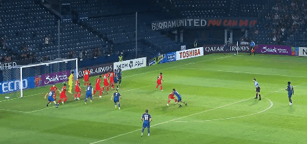 没有任何的试探,从比赛开始武里南联便对上海海港展开了进攻,第8分钟,辛德勒精准的传中,比索利推射击中立柱外侧出了底线,上海海港逃过一劫。
