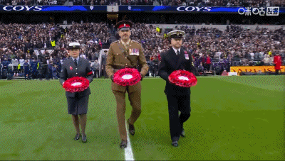 赛前默哀,双方球员为阵亡老兵默哀