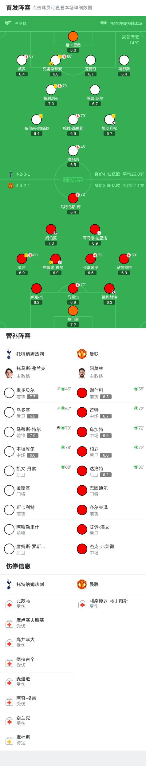 第72分钟,马奎尔因伤离场,乌加特、约罗、芒特替补出场