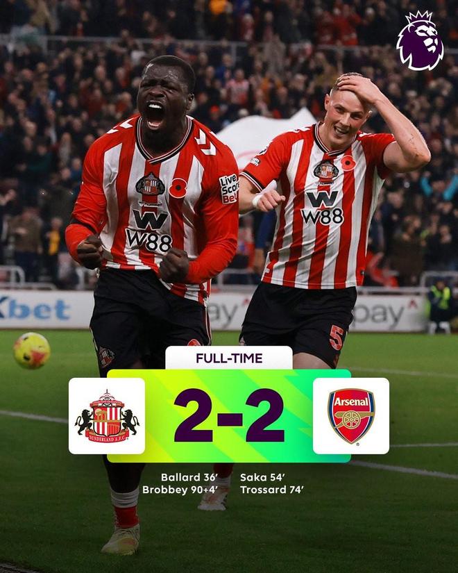 此役客场对阵桑德兰,阿森纳在比赛第94分钟被布罗贝伊攻破球门,最终2-2战平对手,丢掉2分。