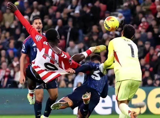 热刺和曼联的比赛同样充满了戏剧性,上半场第32分钟,阿马德传中,姆伯莫头球建功,红魔1-0领先。热刺是姆伯莫喜欢的对手之一,延续了进球的神勇。比分落后的热刺只能不断加强进攻,下半场第84分钟特尔在禁区得球转身劲射破门。伤停补时第一分钟,热刺利用角球机会,奥多贝尔远射,里沙利松将球蹭进了球网。以为热刺会以2-1的比分绝杀的时候,德利赫特站出来用头球完成了绝平好戏,最终双方2-2战平,各拿1分,积分都是18分,热刺暂列第5名,红魔暂列第8名。