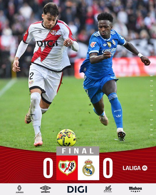 北京时间11月9日23:15,西甲联赛第12轮,巴列卡诺主场迎战皇马。上半场维尼修斯、劳尔-阿森西奥失良机,两队暂0-0战平;下半场两队也都没能改写比分,最终皇马0-0巴列卡诺,联赛四连胜终结。