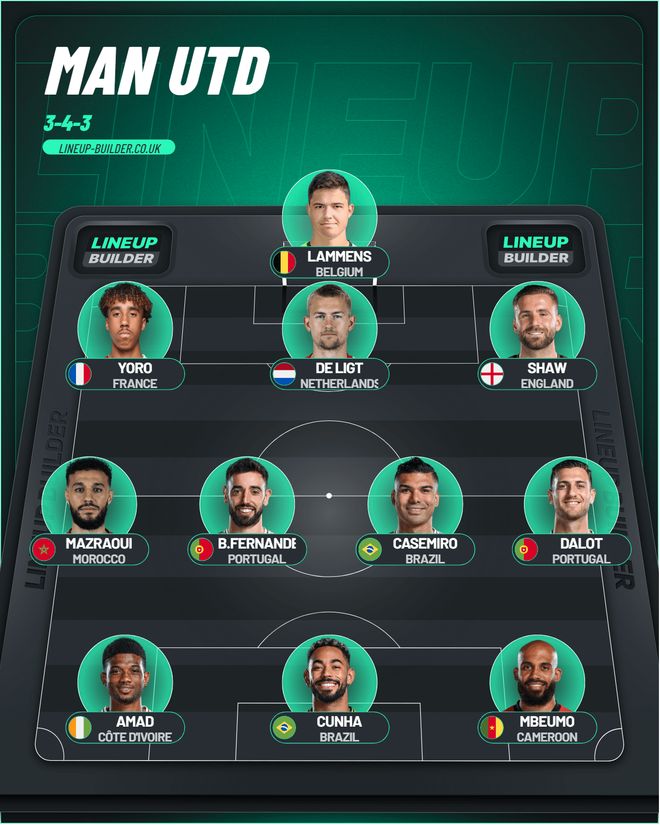 预测谢什科伤缺期间曼联首发阵容:塞纳·拉门斯/莱尼·约罗(马奎尔),德里赫特,卢克·肖/马兹拉维,布鲁诺·费尔南德斯,卡塞米罗,迪奥古·达洛(帕特里克·多古)/阿马德·迪亚洛,库尼亚(芒特),姆贝莫。
