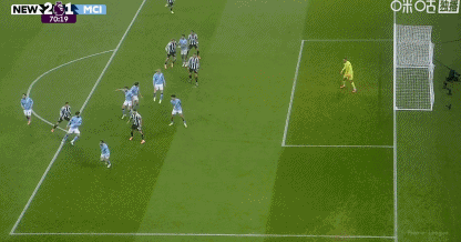 仅仅再过3分钟,曼城这边也找到机会,曼城左侧角球机会,多库禁区右侧后点得球挑传门前,哈兰德小禁区前沿抢点头槌攻门被挡出,谢尔基禁区左侧得球再往门前传也被挡出,迪亚斯抢到第2落点迎球凌空扫射,皮球从舍尔裆下穿过弹入网窝,曼城1:1快速扳平比分。纽卡斯尔不甘示弱,也来个快速回应,又仅仅再过2分钟,纽卡斯尔前场连续围攻,墨菲禁区右侧前沿兜传门前,众人争抢一片混战,吉马良斯小禁区右侧抢到第2落点头槌攻门,BOOM的一声皮球被横梁挡出,巴恩斯门前机敏抢到皮球,凌空调整了一下后再凌空将球扫入网窝,纽卡斯尔2:1闪电般的再次取得领先。尾声阶段曼城展开猛烈反扑,他们也还是有机会追平比分,只是第86分钟,萨维尼奥禁区左侧后点无人防守的情况下,近距离凌空扫射打了飞机,最终曼城客场1:2不敌纽卡斯尔,2连胜被终止。