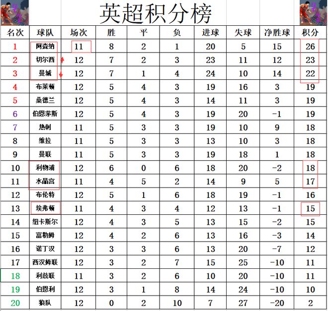 积分榜方面,利物浦的笑话还在继续,今天又输球开始连败,近7轮输了6场的他们本轮很可能就再上半区看不到他们了。利物浦继续沉沦,曼城今天也输了球,这恐怕是阿森纳这些年最好的夺冠机会了,他们先战少赛一场领先曼城4分,多利物浦8分。不过切尔西倒是追的很紧,他们超过曼城1分升至第2,落后阿森纳3分。