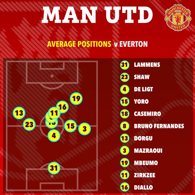 由于谢什科、库尼亚和马奎尔受伤,阿莫林不得不改变曼联首发阵容。齐尔克泽赛季首次先发,阿马德·迪亚洛和姆贝莫在他身后左右辅助,帕特里克·多古和马兹拉维担任两侧边翼卫,中场继续是卡塞米罗搭配布鲁诺·费尔南德斯,莱尼·约罗、德里赫特和卢克·肖在塞纳·拉门斯身前组成防线。