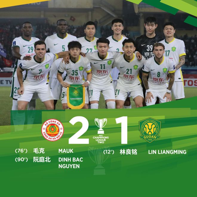 最终,北京国安客场1-2负于河内公安。