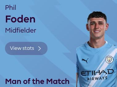 最终经过英超官网球迷投票,福登以71%的得票率当选全场最佳球员。