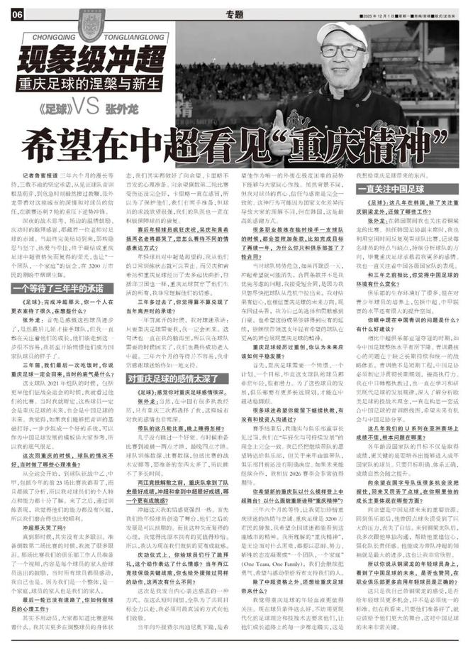 ◆希望新的重庆队以什么模样登上中超舞台?以什么面貌重新诠释“重庆精神”?