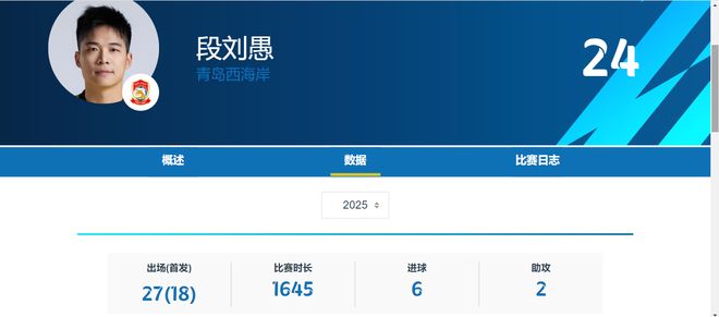 司职中场,租借加盟青岛西海岸,合同年底到期。