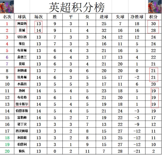 积分榜方面,曼城惊险赢球后,近5轮赢了4场,先赛的他们将和阿森纳的差距缩小到2分,坐稳了第2的位置。热刺战平纽卡斯尔,两队积分还是一样,热刺净胜球优势排在第11,纽卡斯尔第13。埃弗顿赢球后,则是暂时追上利物浦升至第9。