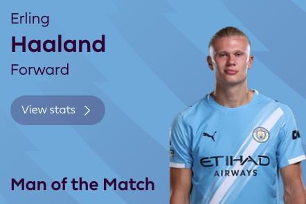 英超第14轮,曼城客场5-4险胜富勒姆,此役打入一球达成英超百球里程碑的哈兰德当选英超官方全场最佳球员。
