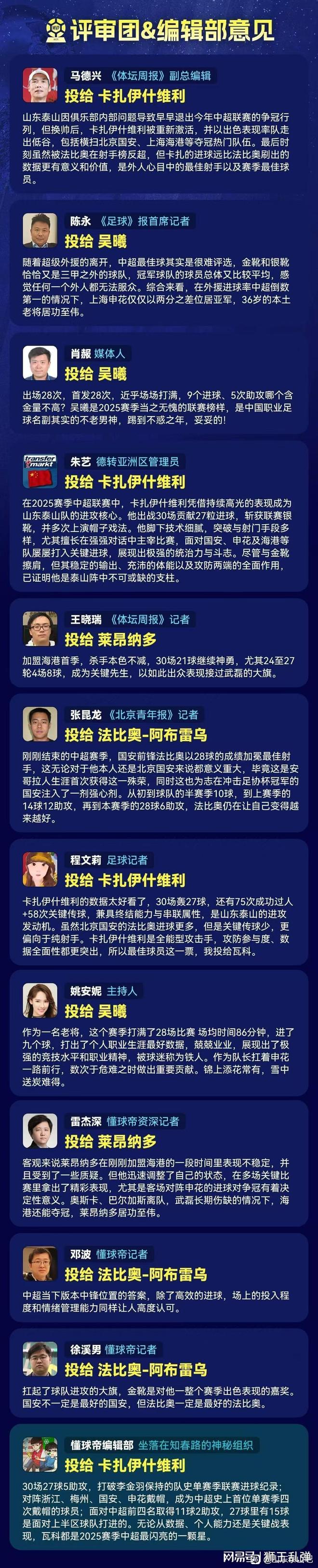 2025赛季中超最佳球员候选名单公布后,申花中场吴曦的缺席成为热议焦点。在之前的媒体投票中,来自《足球报》的陈永、咪咕女主持姚安妮以及媒体人肖赧均将选票投给了这位36岁的老将,但他最终却无缘20人候选名单,看似意外的结果,实则暗藏中超评选的底层逻辑,堪称意料之内的必然。