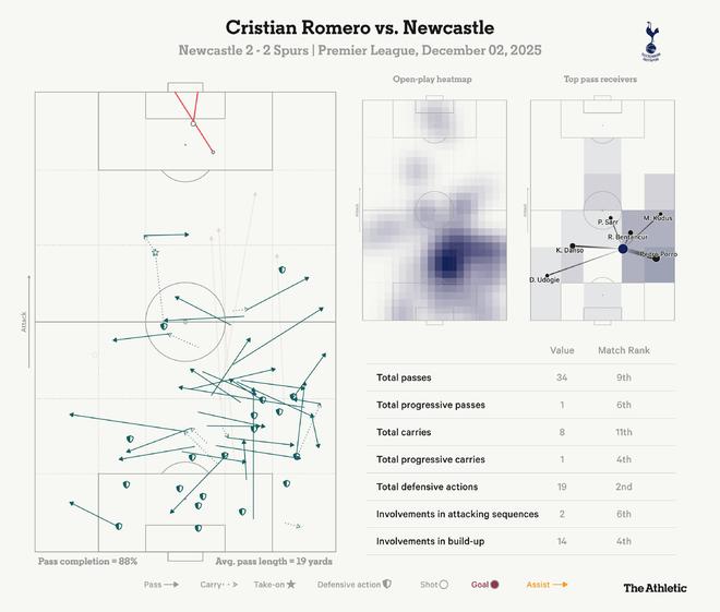 北京时间12月3日,英超第14轮,热刺客场2-2战平纽卡,赛后,The Athletic发表专题文章,分析并点评了本场比赛。