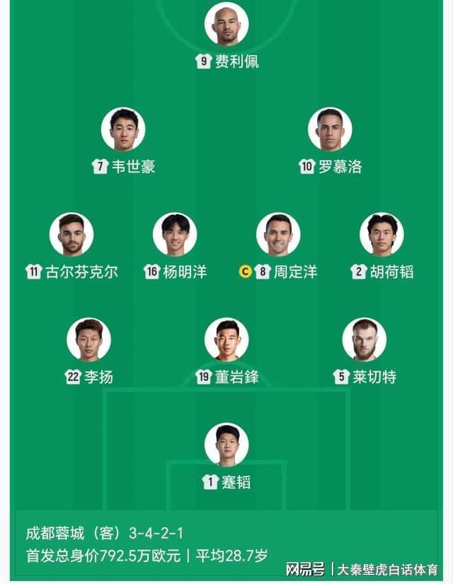 成都蓉城本场摆出3-4-2-1阵型,具体首发如下: