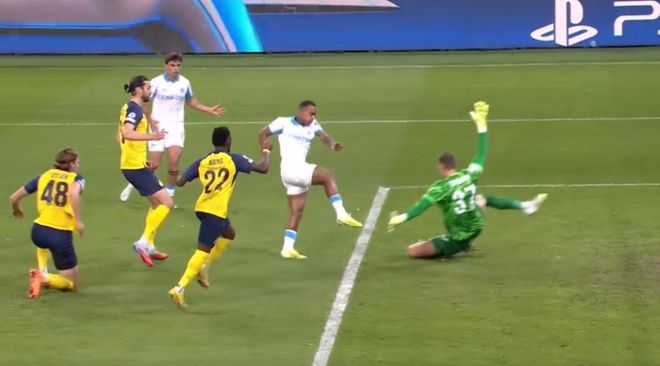 比赛刚开始5分钟,马赛就丢球了。哈利利在右侧带球内切抽射近角,皮球钻入球门右下角。这脚射门角度太刁钻了。门将没能把球扑出。圣吉罗斯联合获得梦幻般的开局。第15分钟,马赛扳平比分。派尚在门前抓住门将接球脱手的机会,补射破门。第28分钟,维阿犯规,被出示黄牌。第41分钟,马赛反超比分!格林伍德在禁区内晃开角度劲射破门。半场结束,马赛2-1领先圣吉罗斯联合。