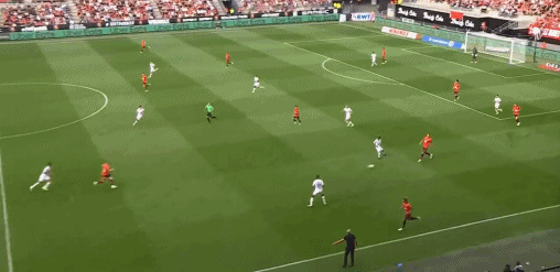 所以,这就从高位压迫演变成了某种基于人盯人的防守思路,大家各管各的,也是现在很多教练的思路,比如加斯佩里尼、阿隆索、马雷斯卡等人都是如此。