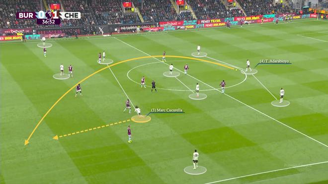 扮演这个角色的常常是库库雷利亚,他频繁提供前插和套边跑动,这正成为切尔西在面对众多深度防守球队时越发关键的工具。这帮助他们在十一月2-0客胜伯恩利的比赛中,击破了对手顽固的防守大巴。