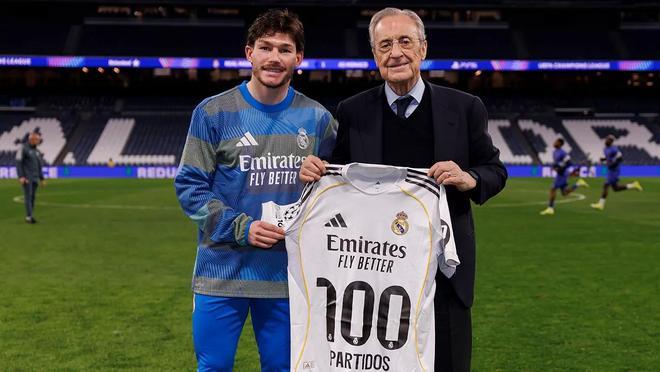 在与摩纳哥的欧冠比赛中达成皇马生涯百场里程碑后,弗兰克-加西亚赛后获赠纪念球衣。