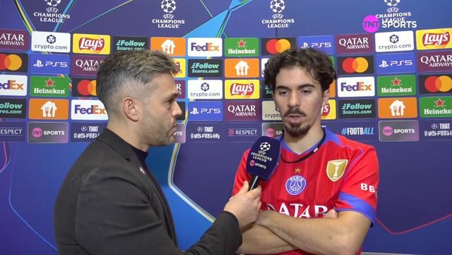 欧冠联赛阶段第7轮,葡萄牙体育2-1战胜巴黎,赛后巴黎中场维蒂尼亚接受了TNT体育墨西哥频道的采访。