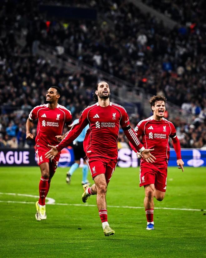相比巴萨的起伏,利物浦客场挑战马赛表现相当出色。斯洛特的球队不急于提速,而是耐心消耗对手。比赛一开打,红军就反客为主,先是埃基蒂克被吹越位、击中立柱,属于运气不佳;不过场上的节奏牢牢控制在利物浦脚下。