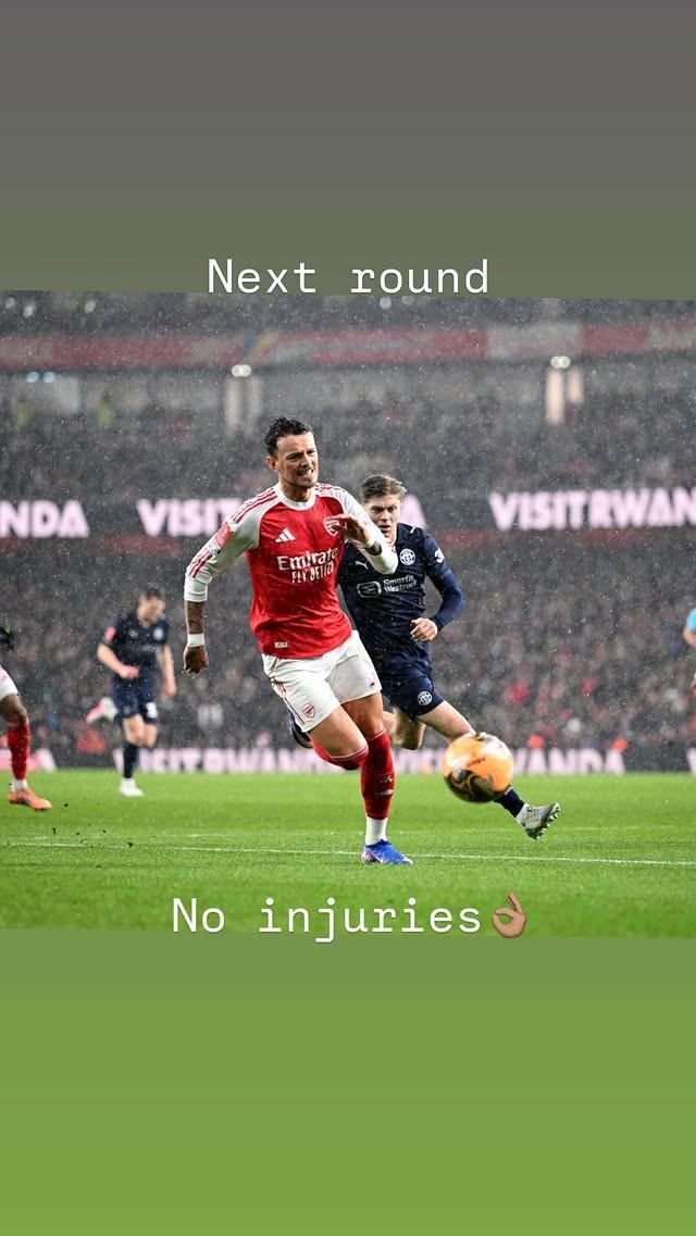 阿森纳在英格兰足总杯第四轮主场4-0大胜维冈竞技成功晋级下一轮,但首发出场的本-怀特在比赛的尾声阶段疑似因伤被换下引发了不少担忧,对此这名后卫表示无需杞人忧天。