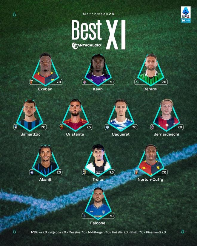 意甲第26轮最佳阵容: