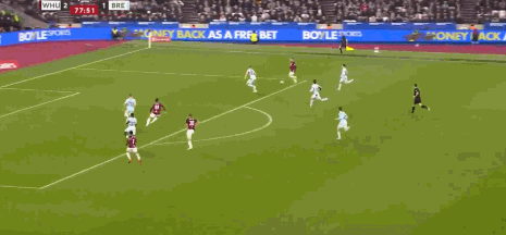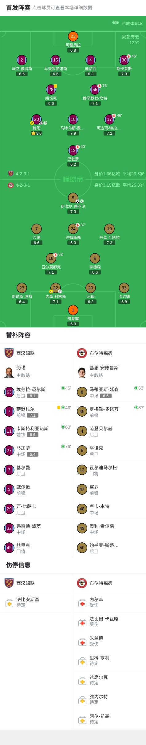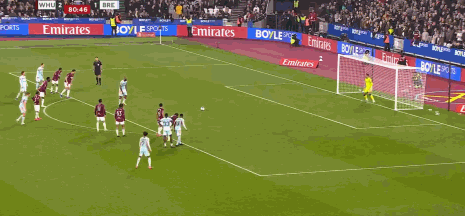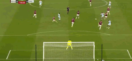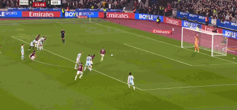 第20分钟,先拔头筹,鲍恩门前得分,西汉姆联1-0