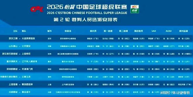 本周末,中超第二轮的焦点大战——北京国安客场对阵山东泰山的比赛,将在济南奥体中心打响。对于这场比赛,很多北京和山东的球迷都非常关心执法的主裁判是谁,而近期中国足协也正式公布了这场京鲁大战的裁判安排:主裁判麦麦提江,两名助理裁判分别是马济和刘星,视频助理裁判由唐顺齐担任。