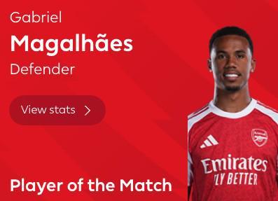 最终经过英超官网球迷投票,加布里埃尔以33%的得票率力压哲凯赖什(32%)当选全场最佳球员。