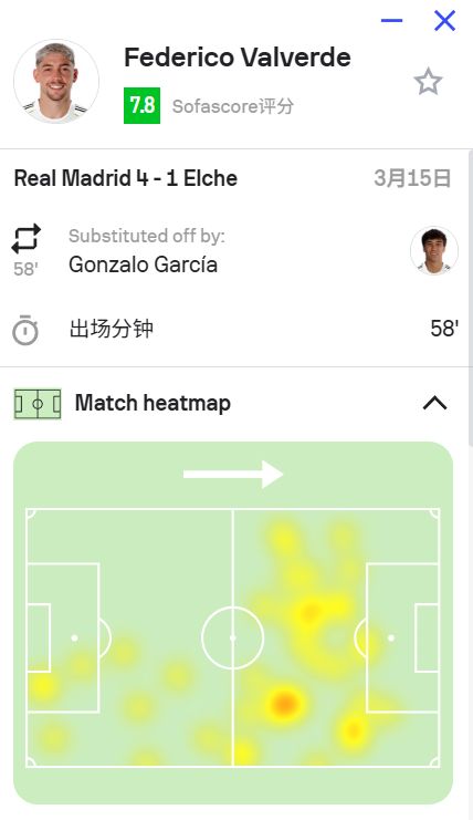 本场比赛,巴尔韦德在第44分钟打进一球,帮助皇马扩大领先优势。但进球只是他全场出色发挥的一部分。