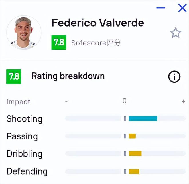 本赛季至今,巴尔韦德各项赛事出场40次,贡献7球12助攻。对于一个以跑动和拦截见长的中场而言,这样的进攻数据堪称出色。