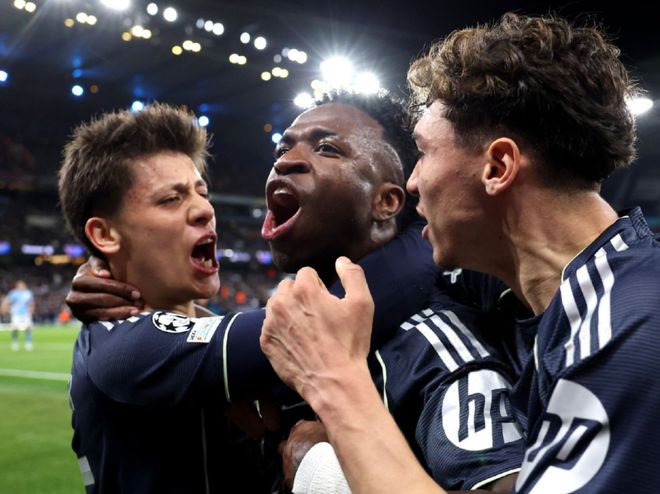 下半场易边再战。第47分钟,维尼修斯兜射踢偏。3分钟后,哈兰德禁区中路的射门被门将挡出。随后,他再射一脚,踢飞了。第54分钟,哈兰德在禁区左侧小角度射门被扑出。罗德里禁区外再射一脚,踢偏了。第62分钟,维尼修斯浪费单刀机会。随后,多库进球被判越位。7分钟后,楚阿梅尼的头球攻门被门将化解。最后时刻巴尔韦德进球,但被吹越位。补时阶段,维尼修斯进球杀死比赛!最终,曼城1-2输给皇马,惨遭双杀。皇马成功挺进8强!