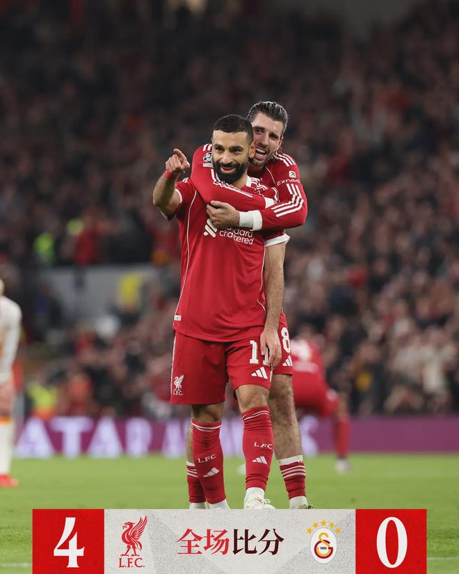4-0,总比分4-1,逆转晋级。比分很利物浦,过程更利物浦。32脚射门,16脚射正,5.02的预期进球值,对手全场4脚射门0射正。这不是一场胜利,是一次宣告。