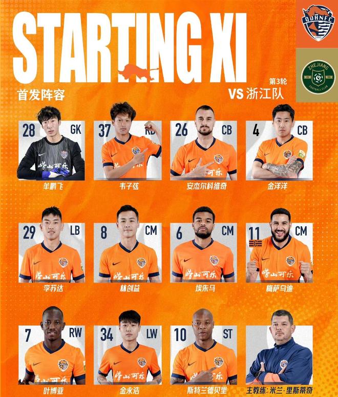 浙江队阵型为352:门将是赵博,三中卫是队长波西诺洛,刘浩帆和徐俊驰。前场:米特里策、孙国文打两个边前卫。朴镇燮、托利奇和鲍盛鑫组成三中场。前锋是王钰栋和瓜里拉帕。
